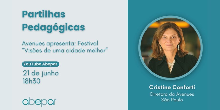 Convidada a participar do projeto “Partilhas Pedagógicas”, no próximo dia 21 de junho, às 18h30, a Avenues São Paulo, associada à Abepar, vai dar destaque ao festival “URBE - Urban-Based Education Festival”, realizado pela própria escola em conjunto com a ArqFuturo e a BEI Educação.