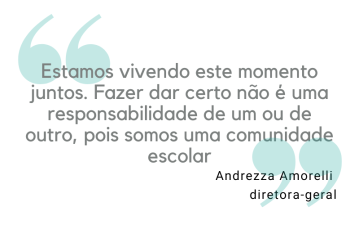 Para Amorelli, colaboração e comprometimento fazem parte da identidade da escola. “Eu disse às famílias: isso não pode ser perdido. Estamos vivendo este momento juntos. Fazer dar certo não é uma responsabilidade de um ou de outro, pois somos uma comunidade escolar.”