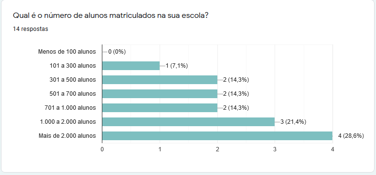 1) Das escolas que responderam à pesquisa, 28,6% possuem mais de 2 mil alunos.