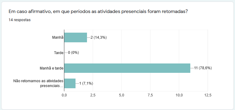 3) A maioria das escolas (78,6%) retornou as atividades em dois períodos: manhã e tarde.