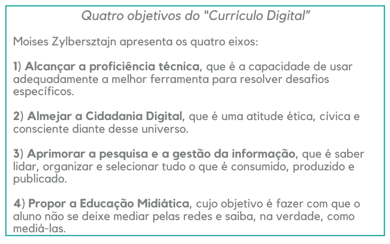 O Núcleo de Cultura Digital não atua como um simples apoio nas questões de tecnologia. É um centro que promove formação, intervenção e interlocução com a escola sobre os efeitos da cultura digital no projeto curricular e na instituição como um todo. “Quando falamos de cultura digital já nos descolamos da ideia única de tecnologia”, contextualiza Debora Vaz. Saiba no quadro ao lado quais são os objetivos do currículo digital do Santa Cruz, segundo o coordenador do Núcleo, Moises Zylbersztajn.