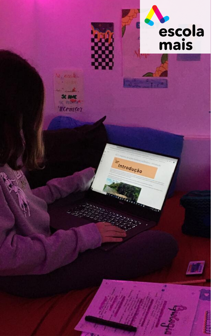 A partir do Ensino Fundamental 2 até o Ensino Médio, as lives ou encontros “síncronos” acontecem todos os dias. Mas o objetivo aqui é muito mais o de promover a colaboração, a troca e a síntese entre alunos e dos alunos com os professores.