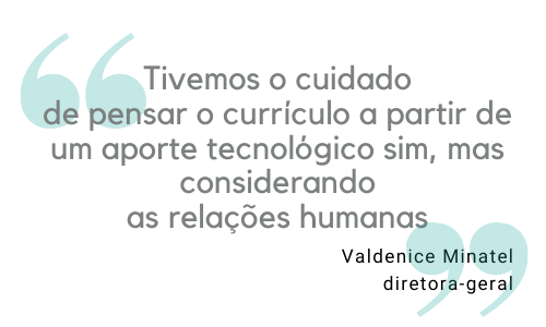 Mesmo com um trabalho tecnológico já consolidado, o colégio de São Paulo teve de se adaptar. "Naqueles momentos, importava menos a tecnologia e mais a questão do vínculo, do estar junto virtualmente”, conta a diretora-geral, Valdenice. “Tivemos esse cuidado de pensar o currículo a partir de um aporte tecnológico sim, mas considerando as relações humanas".